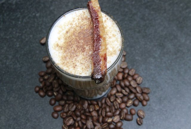 - garnished with a cured bacon skewer